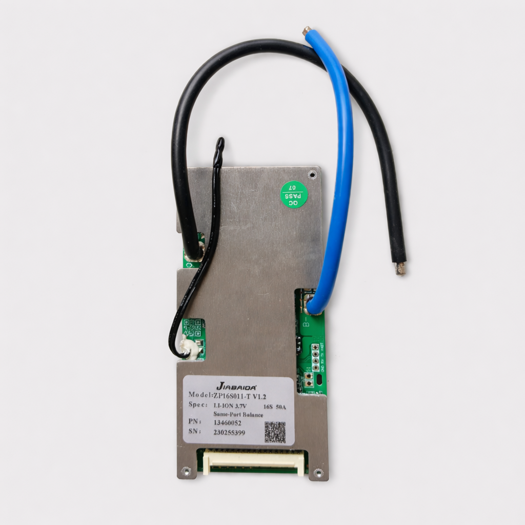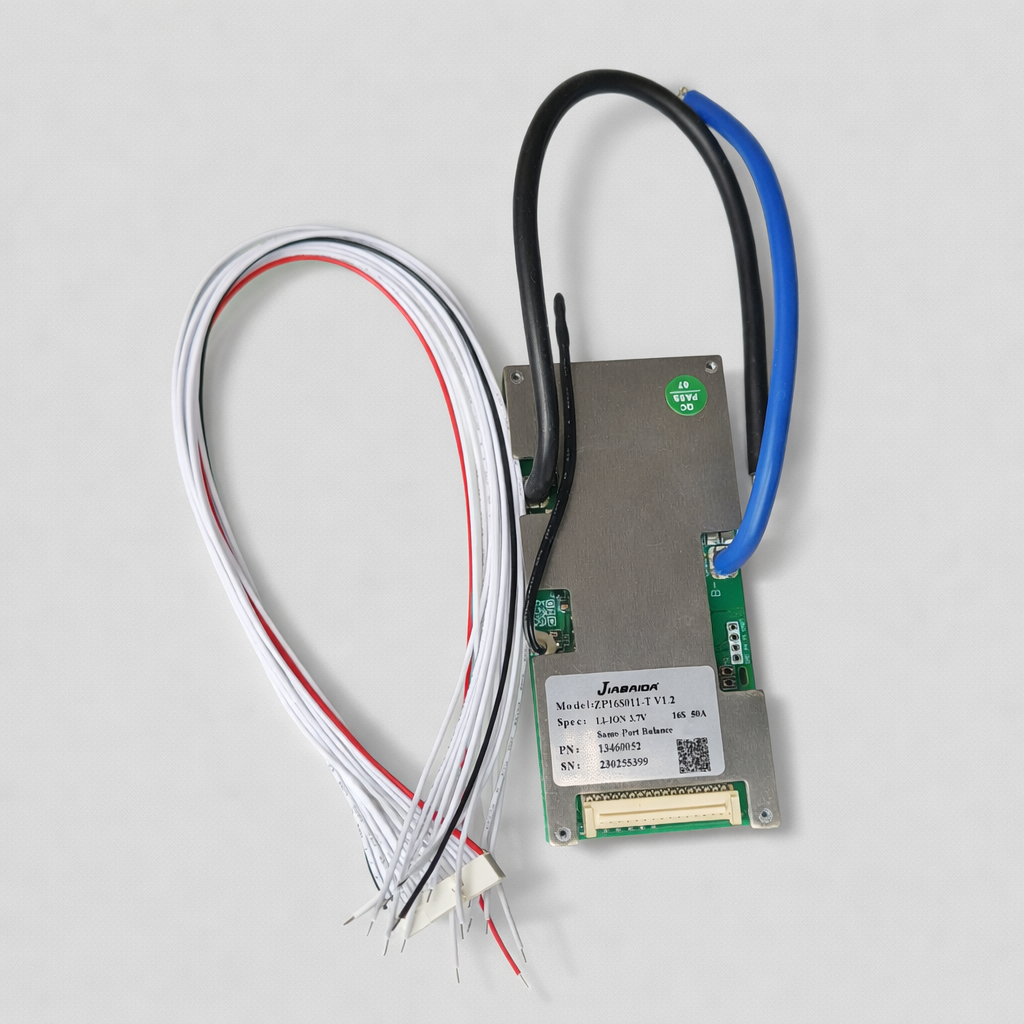 The board is intended for integration into battery packs built using 16 Lithium-ion cells connected in series (16S configuration). It is suitable for applications requiring a 16S Lithium-ion battery management solution with a 50A rating, provided the battery chemistry and configuration match the specifications printed on the unit.