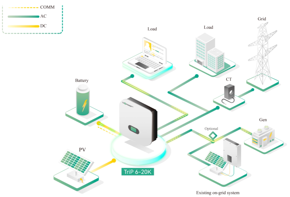 The LuxPower TriP-EU-15K is a three-phase hybrid inverter from the TriP HV 6–30K series designed for commercial and large residential solar systems. It integrates solar PV, high-voltage battery storage, grid interaction, and UPS backup into one advanced energy solution.